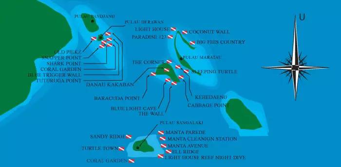 达拉湾是位于印度尼西亚北部加里曼丹岛东北侧的一个小岛,整体位于印度尼西亚中西部。如果不知道的潜友,应该知道诗巴丹,位于诗巴丹下面过了马来西亚-印度尼西亚边境线就不远了。达拉湾周边有达拉湾岛、圣加拉奇岛(Sangalaki)、马拉图拉(Maratua)、卡卡班(Kakaban)这4个美丽的小岛。 达拉湾岛周围共有9个潜点,蕴含丰富的海洋生物种类,这里还发现有新品种的珊瑚。这里的潜水包括有峭壁潜、洞潜以及珊瑚礁岸潜。