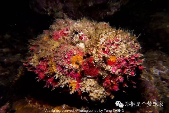 我估计只有潜水员,而且是比较有经验的潜水员,才看的出这只Stone Fish吧?找到眼睛和嘴巴了么?这也是在码头底下拍摄的!