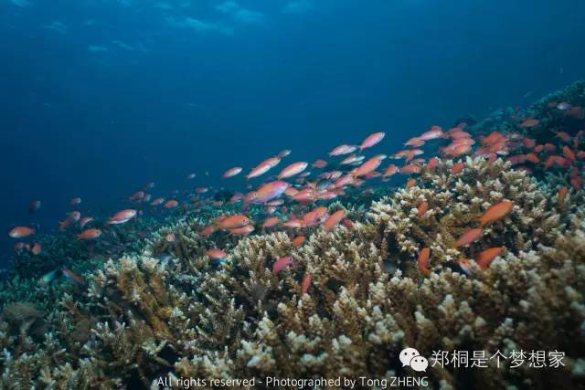 Sangalaki岛的吃浮游生物的蓝色鱼群,让我想起了新西兰穷骑士群岛的Blue Maomao群