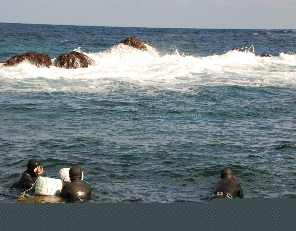 她们只在距岸近的浅海中捕捞。海女们则不得不潜入深海,她们面戴潜水镜、腰系救生绳,潜入较深的海中,用特制的尖刀,撬下海底石头上的珠贝,然后带回海面。