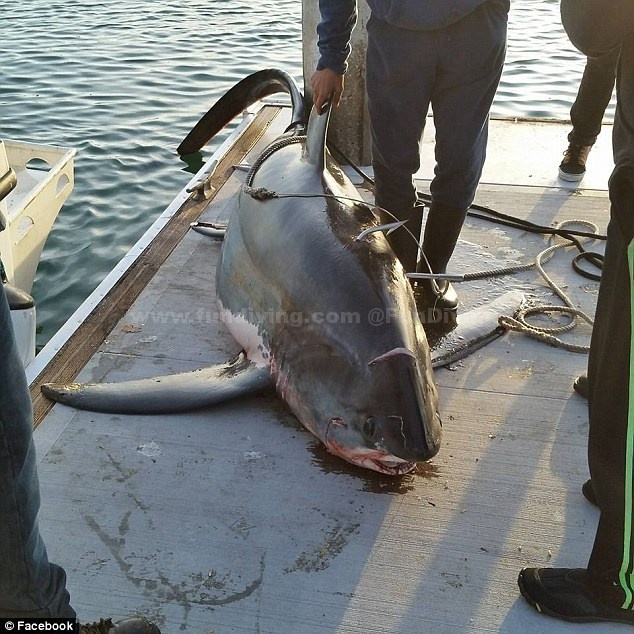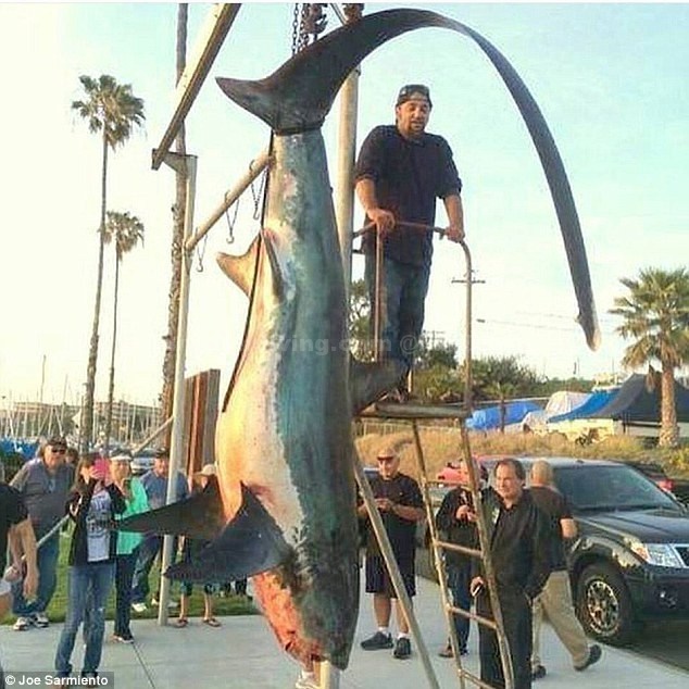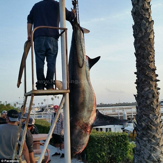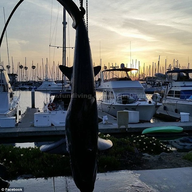 近日,美国加利福尼亚海岸的渔夫约翰.利史(John Lish)捕获一条长达20英尺(约合6.1米)、重达550磅(约合250公斤)的长尾鲨。