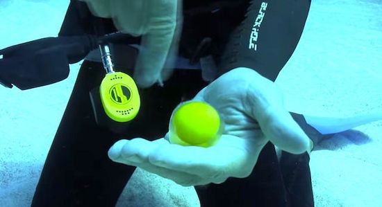 当潜水员在鸡蛋上方转动手指,鸡蛋下方的海水向上推动,使蛋清均匀地包裹在蛋黄周围,成为双层球体。它在水中轻轻摇曳的样子神秘又令人惊喜。