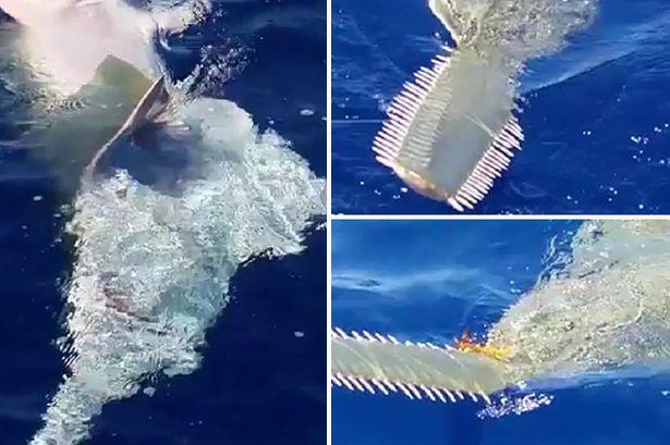 据英国《镜报》6月12日报道,在远离美国佛罗里达州礁岛群的温暖水域上,一名水手用相机捕捉到了一条身长超过4.2米的锯鳐,其标志性的锯状鼻子和几十颗牙齿在照片中清晰可见。