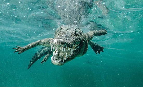 当前位置: > 潜水资讯 > 男子在古巴潜水遭遇巨鳄 “水中杀手”近景曝光